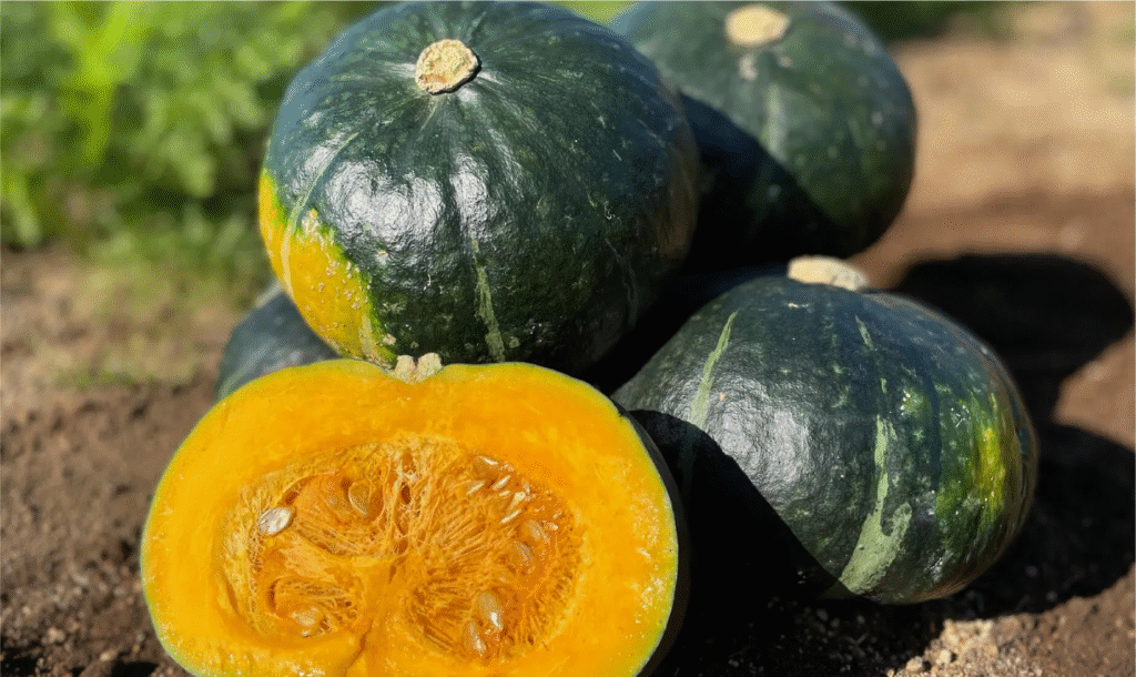 また、垂直型の太陽光パネルを設置したこの農地では、H.Eエナジーのグループ会社であるH.Eファームがかぼちゃの栽培を行っており、収穫されたかぼちゃは国内へ出荷されています。農業収益に加え、太陽光発電による再エネ電力の収益の一部を耕作者に還元することで、農業経営の安定化と持続可能な農業の実現をサポートし、地域全体の活性化に貢献していきます。